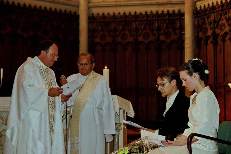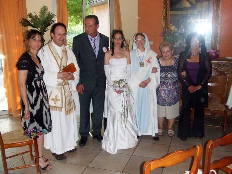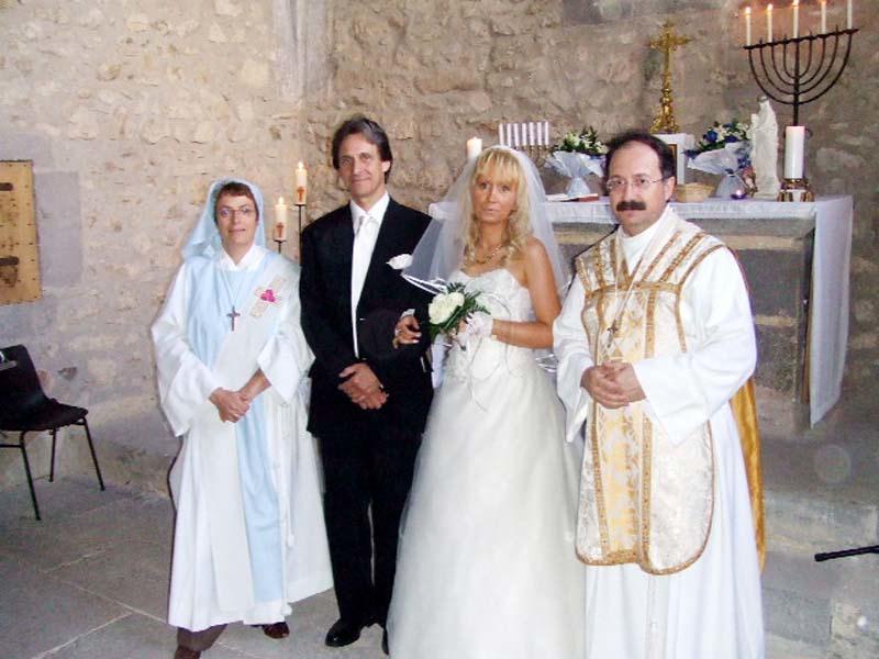 Lydie N. et Paul R. Lydie est la petite nièce de Père Paul C. et la petite fille de sa soeur Yvette L. Le mariage a été célébré au Mas de l'Etoile qui avait mis à notre disposition un espace approprié pour monter l'autel et célébrer dans de bonnes conditions.