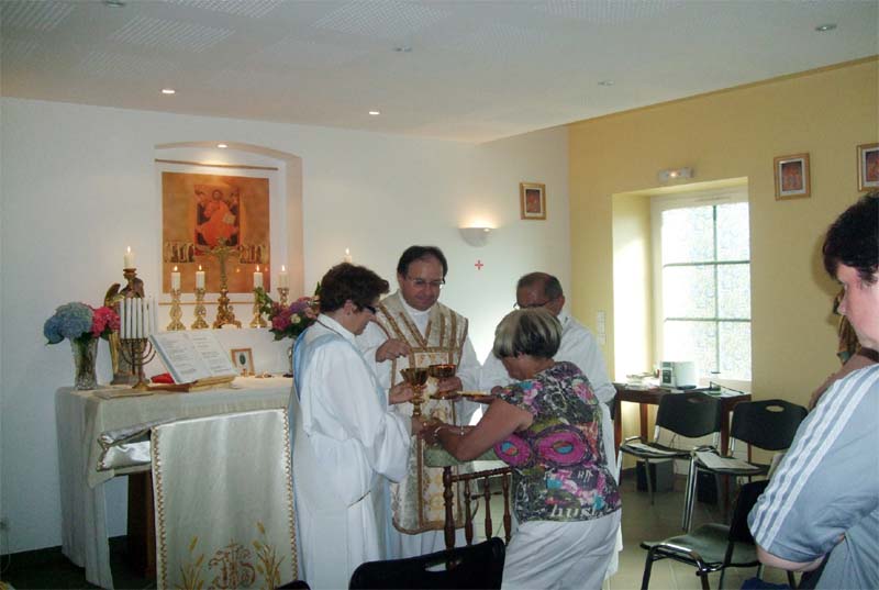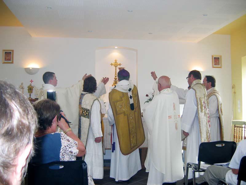 Nous tenons à remercier toutes les personnes et tout le clergé gallican qui nous ont témoigné leur amitié par leur présence ou leur soutien par les courriers reçus lors de la consécration de la chapelle Saint Michel Archange le 30 Juin 2007 par Mgr Thierry Teyssot, notre évêque. Nous continuons donc notre chemin avec ce nouvel élan. Le programme des célébrations se modifie un peu afin d'avoir une fois par semaine soit un office de Saint André le vendredi soir à 18h30 soit une messe le Dimanche à 10h30. Un temps d'accueil, d'écoute ou de prière silencieuse est proposé par Dame Colette les vendredis avant l'office de 15h à 18h avec la présence du Saint Sacrement sur l'autel. Le catéchisme est proposé pour les enfants du primaire; il a lieu une fois par mois.